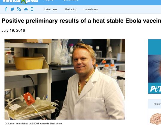Photo featured in Medical Press article “Positive preliminary results of a heat stable Ebola vaccine formulation,” published on July 19, 2016.