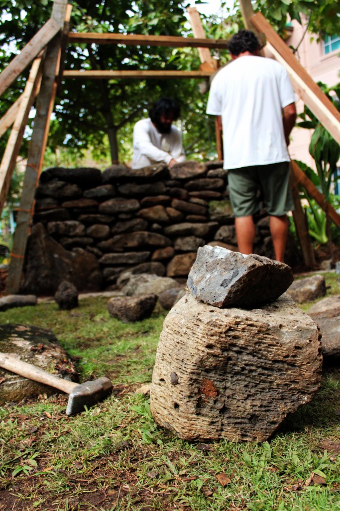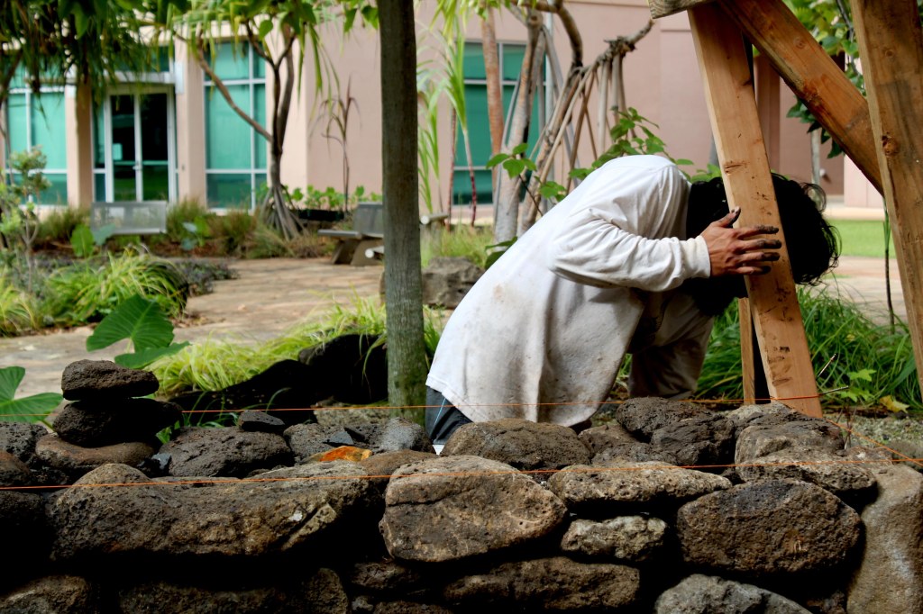 The Department’s community partner Papahana Kuaola, led by Kapaliku Schirman, assembled the Ahu.”